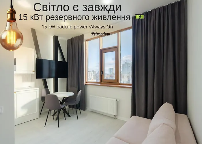 14-7 Diplomat Hall, Zhylianska 59, Kyiv Centre, Stunning City View, 15 Kw Backup Power, Petrovdom Apartment оснащені зручностями для самостійного приготування їжі, включаючи повністю обладнану кухню та обідню зону де гості можуть насолодитися сніданком. Найближча автобусна зупинка до 14-7 Diplomat Hall, Zhylianska 59, Kyiv Centre, Stunning City View, 15 Kw Backup Power, Petrovdom Apartment - Hetmana Pavla Skoropadskoho Street, знаходиться за 5 хвилини пішки.